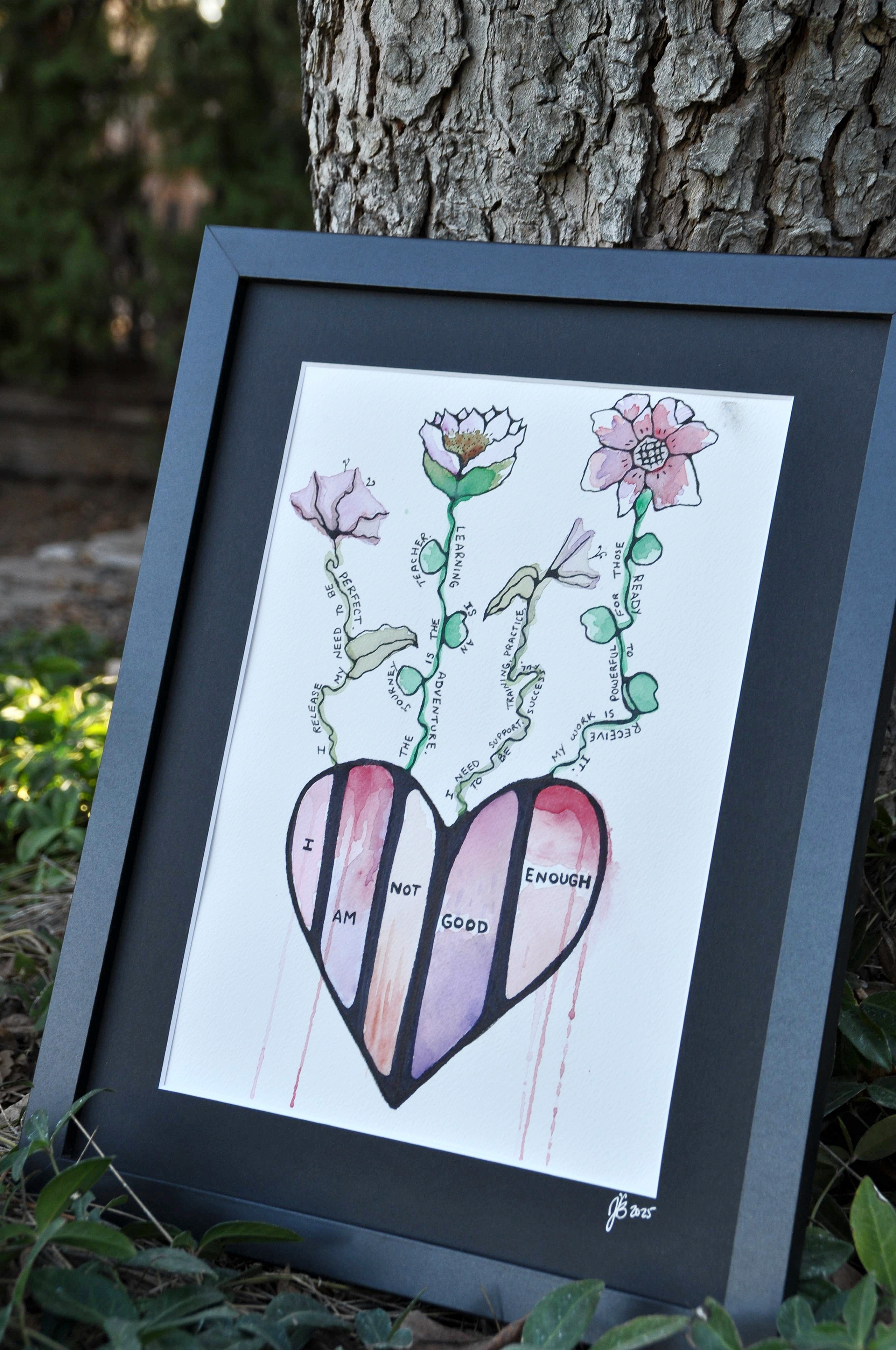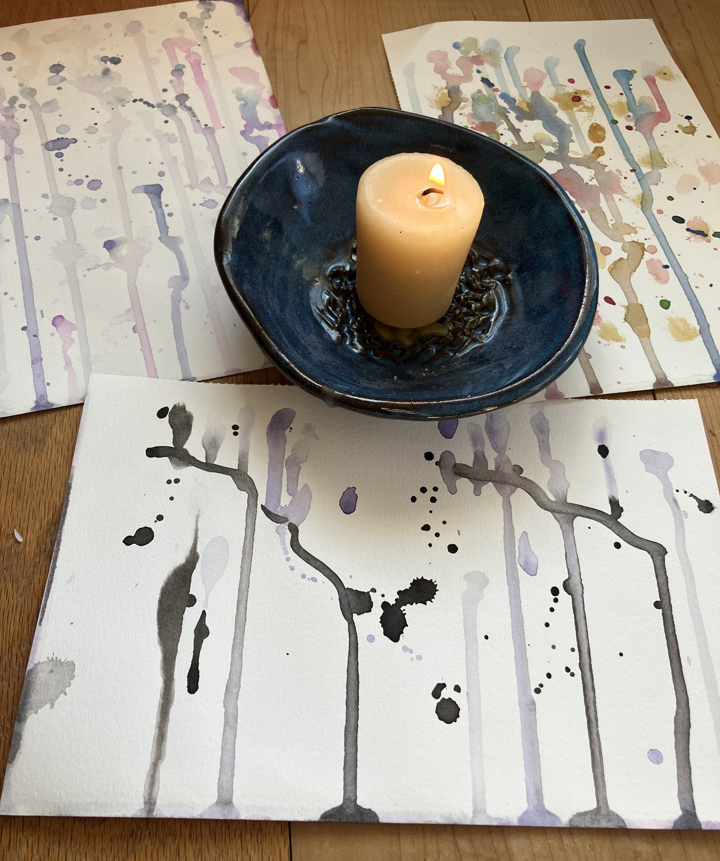 In her first exhibit, “Grief and Other Gifts”, Jackie’s work weaves together affirmations, limiting beliefs, color, ink, nature imagery, abstract forms, neurographic lines, and runny paint cascading down the paper like teardrops. Each piece is created through a process of transformation – some more intellectual and some more expressive – that ultimately aims to find hope and resolve within the tumult and heartbreak of these unprecedented times.